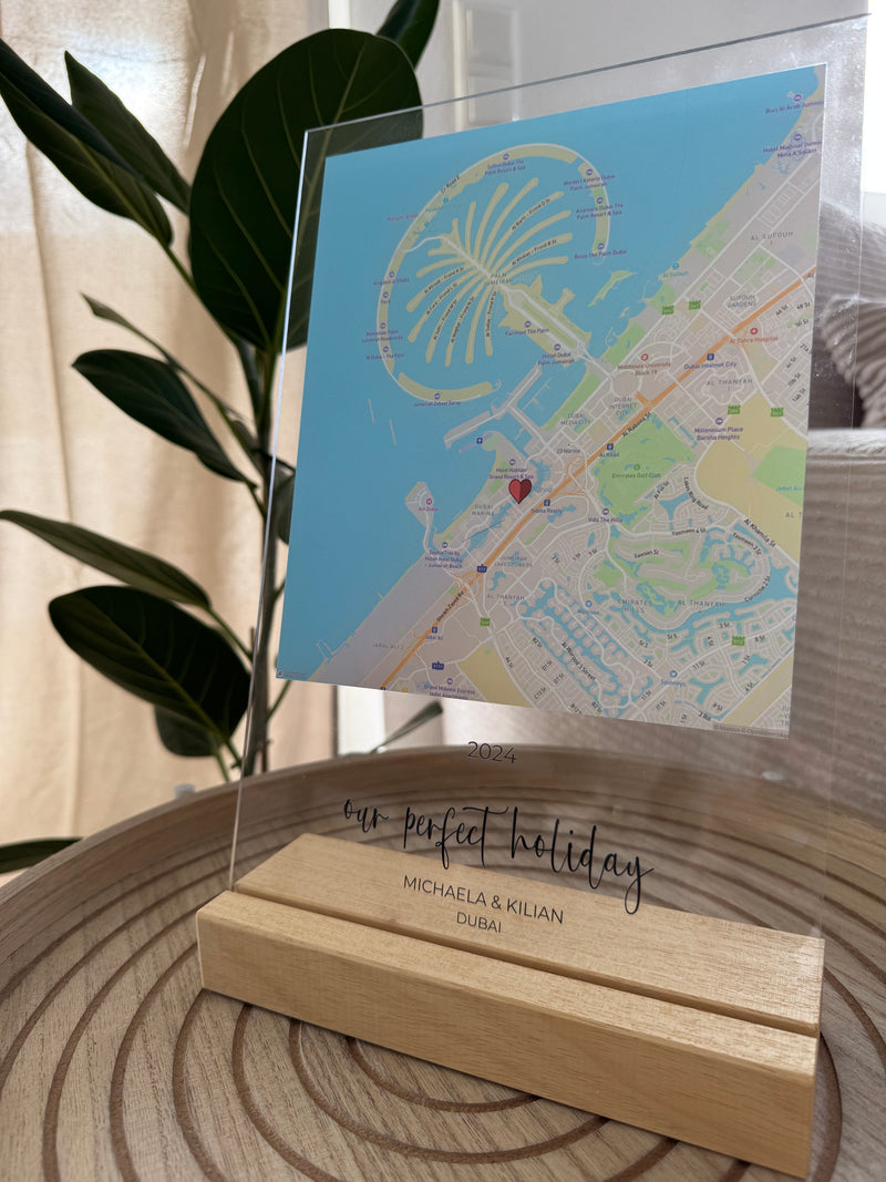 Aussi unique que votre histoire – immortalisez votre lieu spécial sur une élégante plaque acrylique.